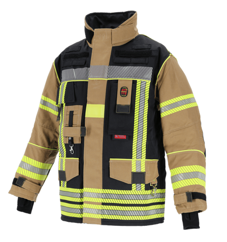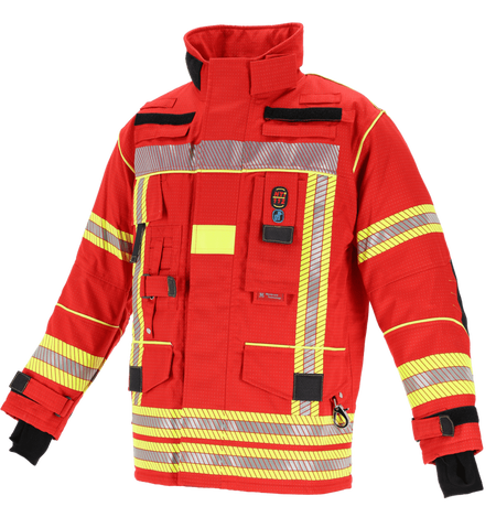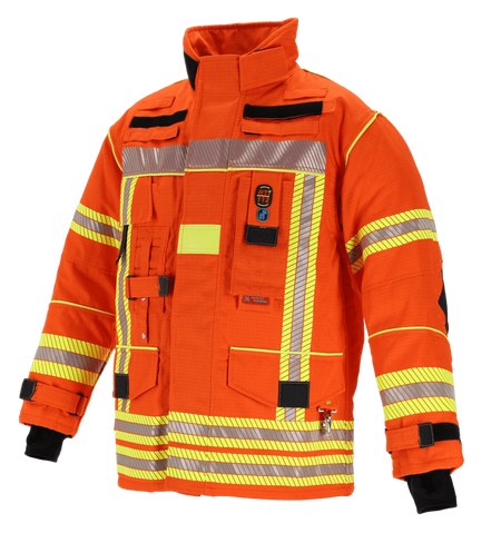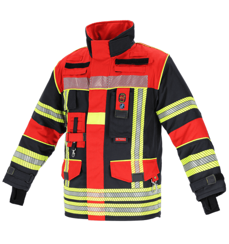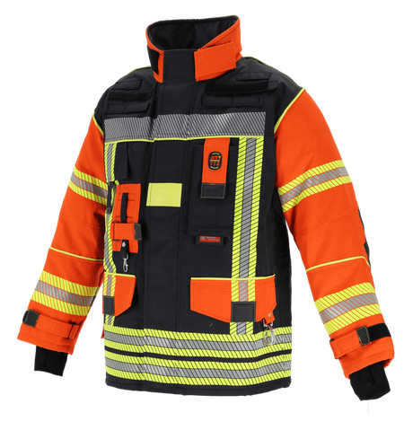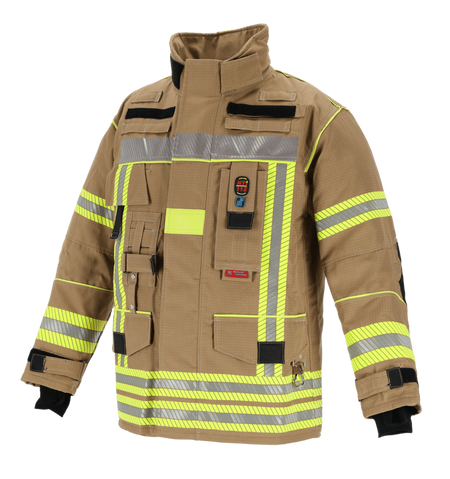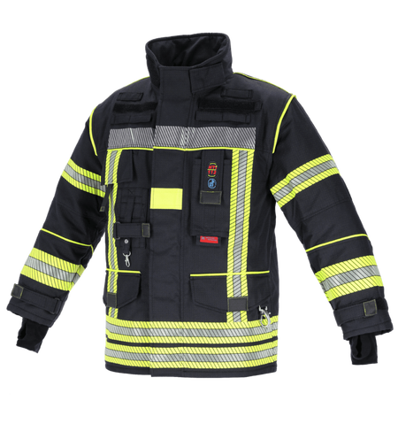 As riscas HuPF no casaco NTi® 112-200 também cumprem com a norma DIN EN 469:2020, secção 6.2.6, mesmo sem as calças (pode ser