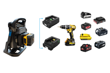 Adaptador Kanga B: Aceita baterias Dewalt, Milwaukee, Metabo.