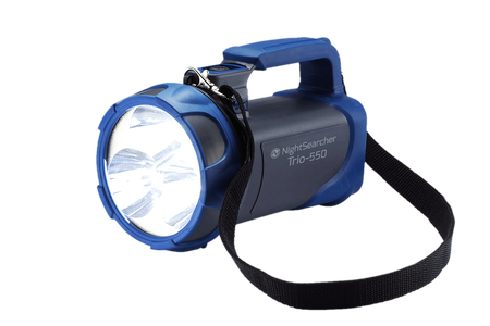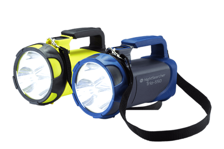 O NightSearcher Trio 550 é um holofote recarregável 3 em 1 com recurso de iluminação de emergência e banco de energia integrado. Disponível em azul ou amarelo de alta visibilidade, o Trio 550 pode ser montado em paredes ou em veículos para acesso rápido e fácil.