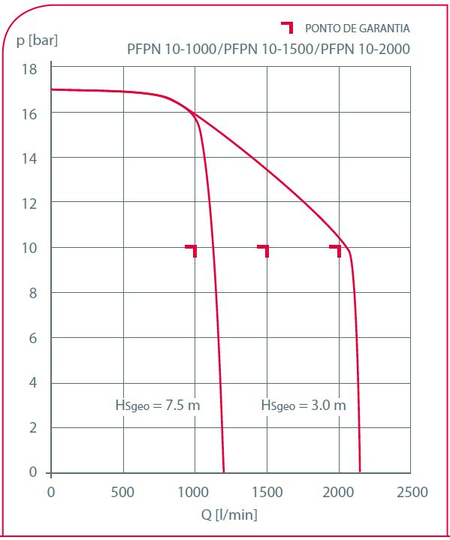 • Monitoramento da pressão de entrada com aviso de cavitação