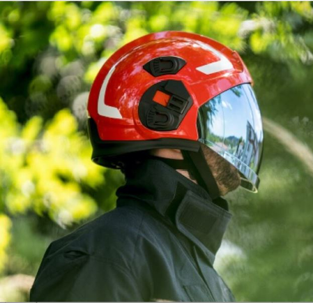 • Viseira rebatível integrada e protetor ocular
